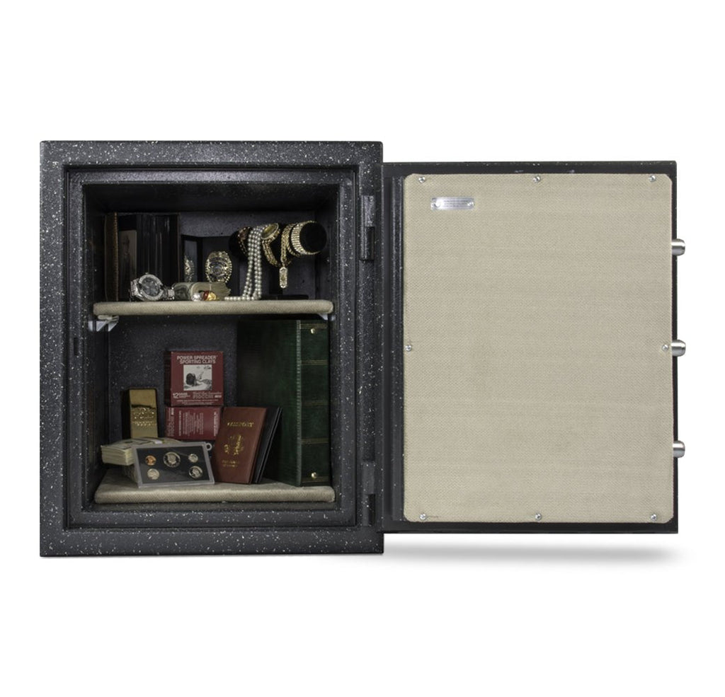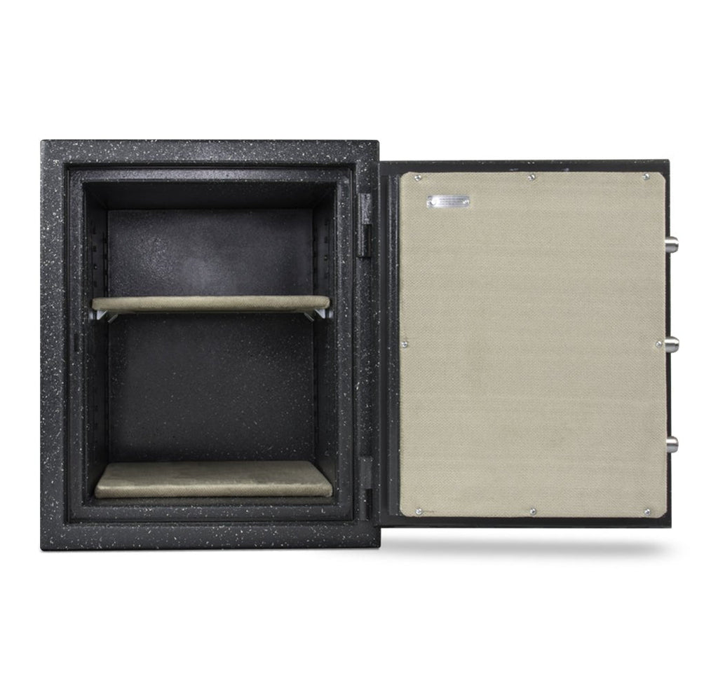 2-5/8″ thick, consisting of 1/8″ outer and inner steel plates creating a burglary resistant structure enclosing a unique proprietary fire resistant material.