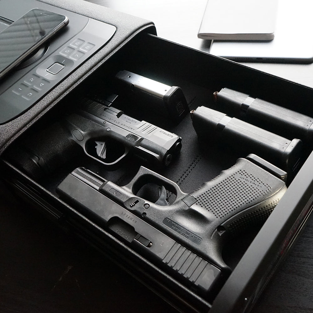 The Vaultek DS5i Smart Station is the largest in the series, combining expansive storage with advanced technology. Perfect for multiple handguns or valuables, it provides biometric security, dual wireless charging, and a discreet design that fits seamlessly into your home or office.