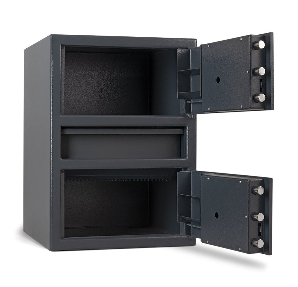 Fish resistant depository drops accept bulk items, drop envelopes or bags.
