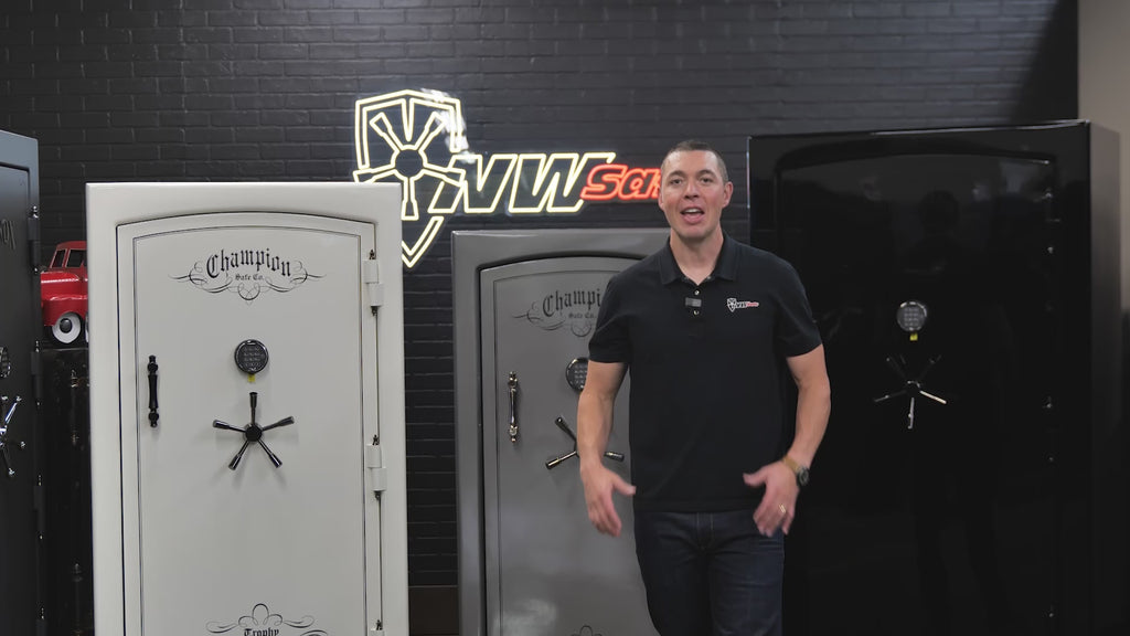 Designed for those who need more space without compromising security, the Trophy 40 blends strength, style, and smart storage. Its 11-gauge steel body and Double-Steel Door Casement™ form a fortress, while a robust Double Plate Steel Door and full inner steel layer ensure unwavering protection. Backed by Champion’s Auto-Relock™ system and Diamond-Embedded Armor Plate™, it resists both fire and attack. With a 2-hour fire rating at 1200°F, the Trophy 40 is built for peace of mind. Inside, a velour-covered interior and door organizer make it easy to customize and access your collection.