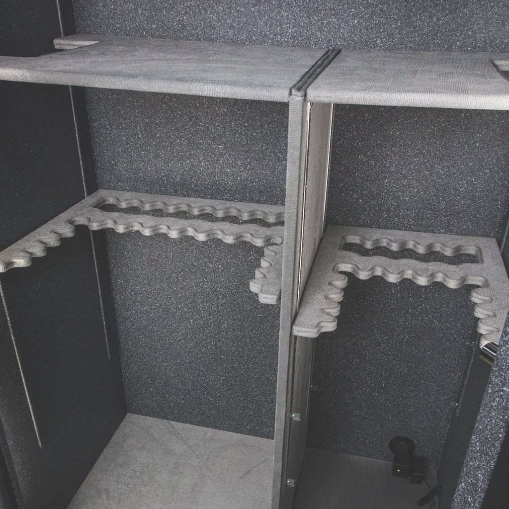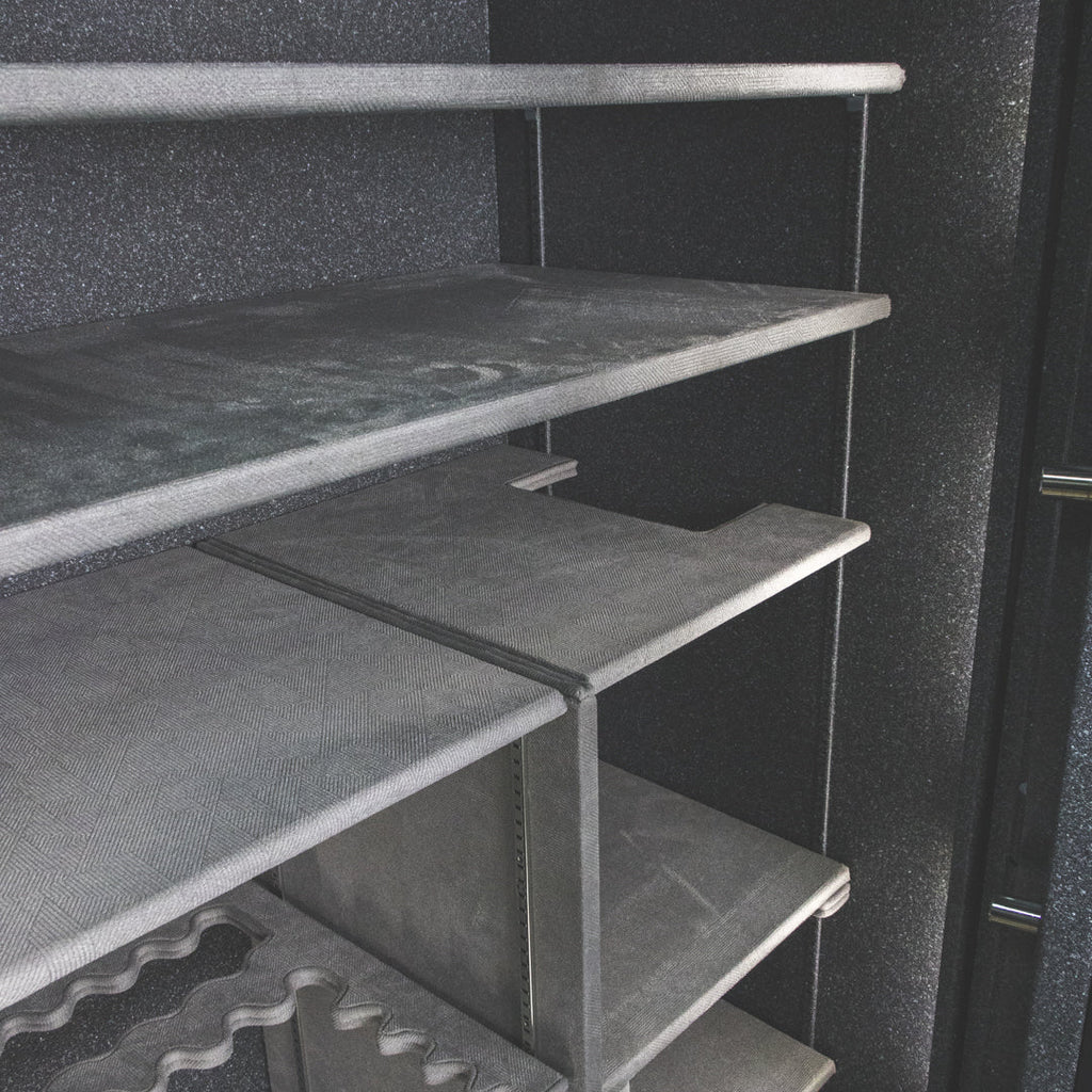 The Challenger Series is built with quality and protection in mind. The door is built using 12-Gauge outer steel with a full 14-Gauge inner plate providing more security and door rigidity to any safe in its class. The 12-Gauge steel walls house 5/8” Type X fireboard along with a heat-expanding fire seal surrounding the door frame to give 60-minutes of content protection against a 1200° Fahrenheit fire. Up to 12-1” doorbolts secure the safe against unlawful break-ins. A double-steel door casement further enhances the pry resistance of the Challenger Series. Included with a 5-spoke handle, external hinges for a 180° opening, high-capacity gun racks, adjustable shelving and a plush interior, you will find that the Challenger Series is the strongest choice in a dollar-to-dollar comparison.