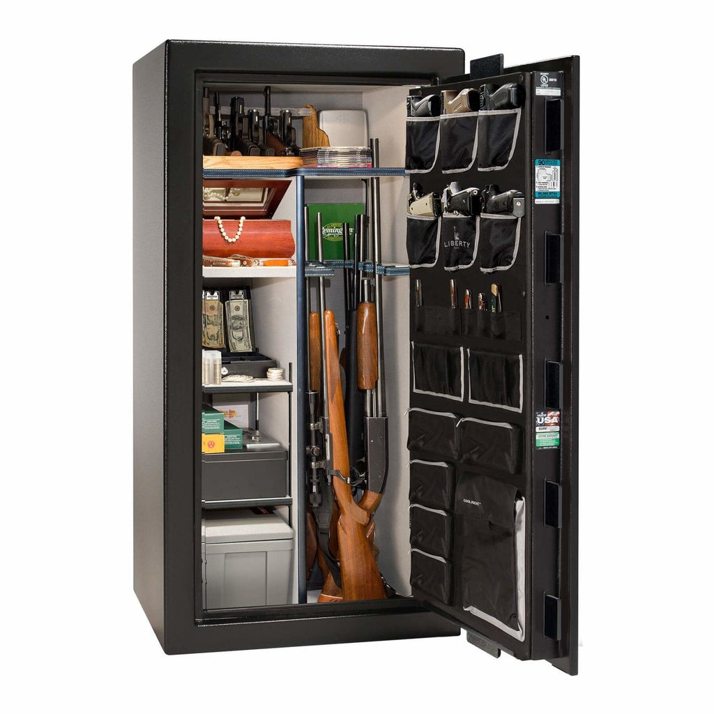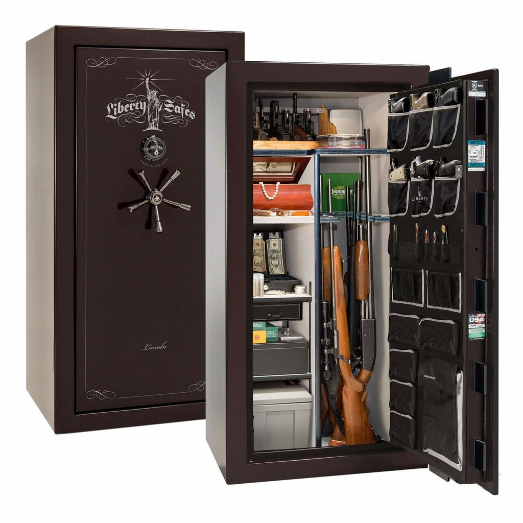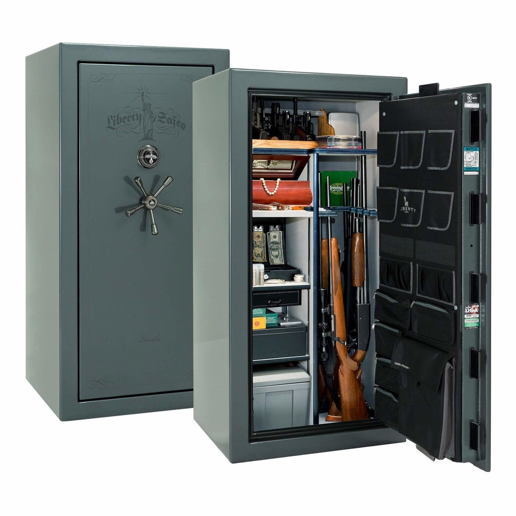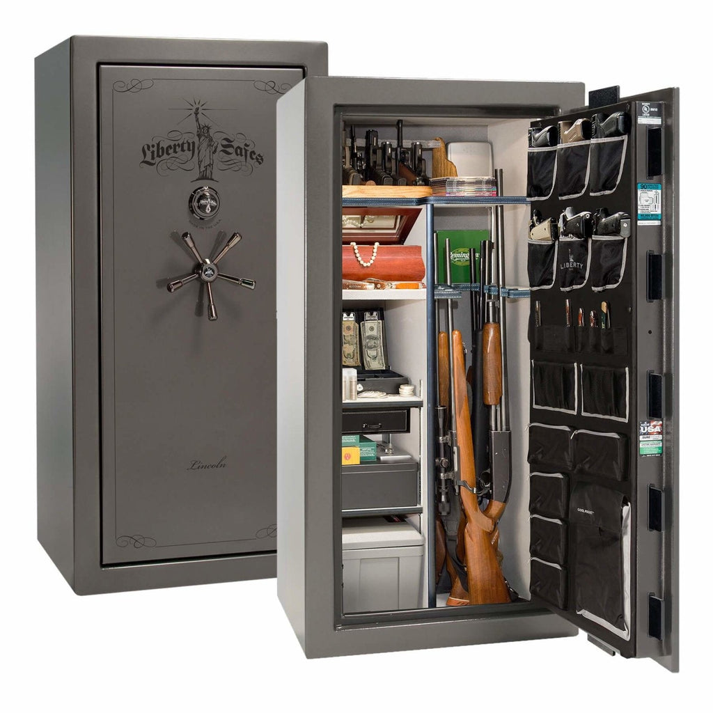 The Lincoln 25 is a truly premium safe in a manageable size, with room for up to 27 long guns. Select from multiple gloss, marble, or textured finishes, and get level 5 security features including: a thicker UL-listed safe body, thicker locking bars, upgraded drill-resistant ball-bearing hardplate, dual relockers, a 5-spoke handle with slip-clutch mechanism, and 2 Hours of fire protection at 1200°F.