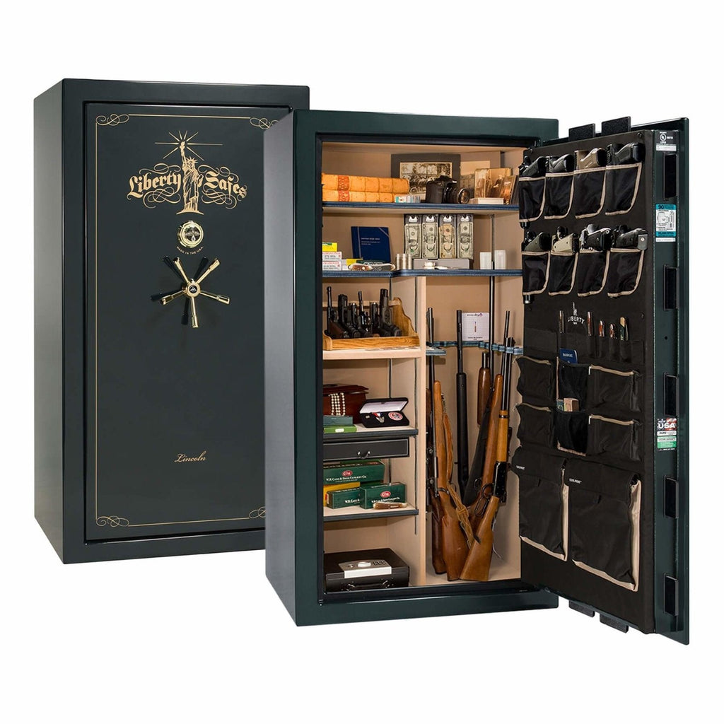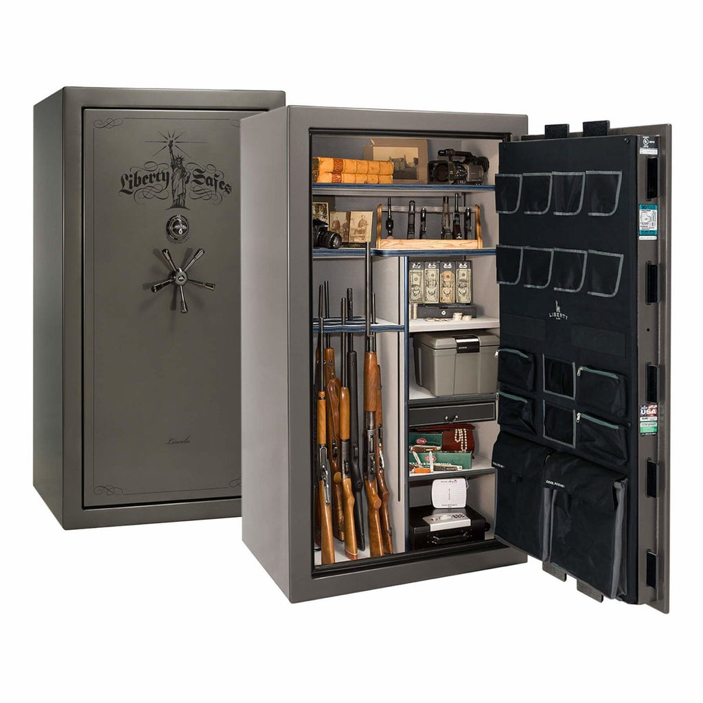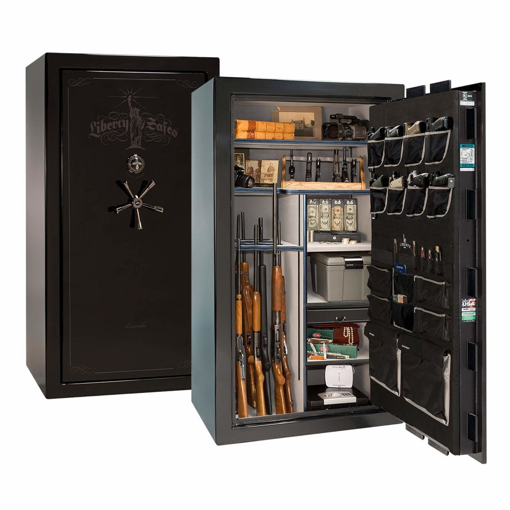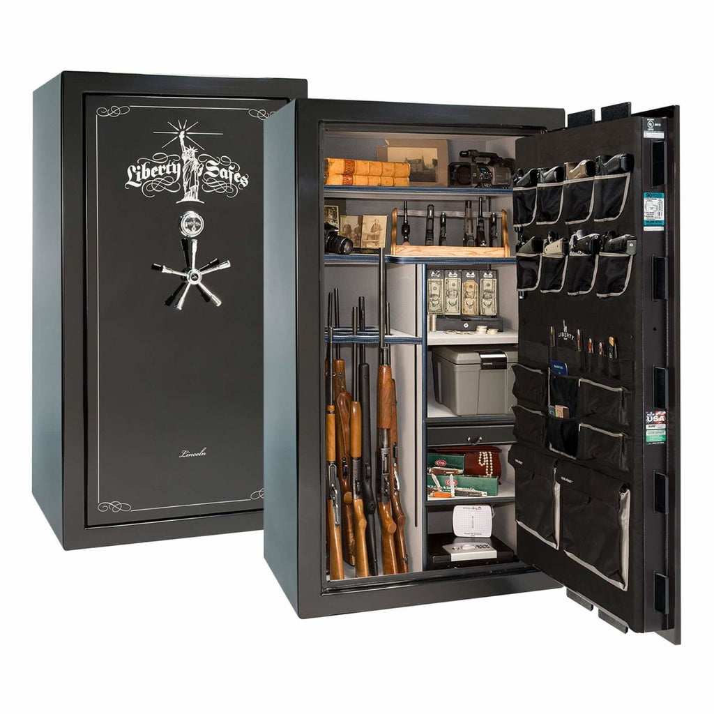The Lincoln 40 is the “just right” premium safe for discerning buyers who need more space than the Lincoln 23, but want a capacious level 5 safe under 1,100 lbs. The Lincoln 40 features: space for up to 35 long guns; multiple gloss, marble, or textured finishes; a thicker UL-listed safe body; thicker locking bars; upgraded drill-resistant ball-bearing hardplate; dual relockers; a 5-spoke handle with slip-clutch mechanism; and 2 Hours of fire protection at 1200°F.