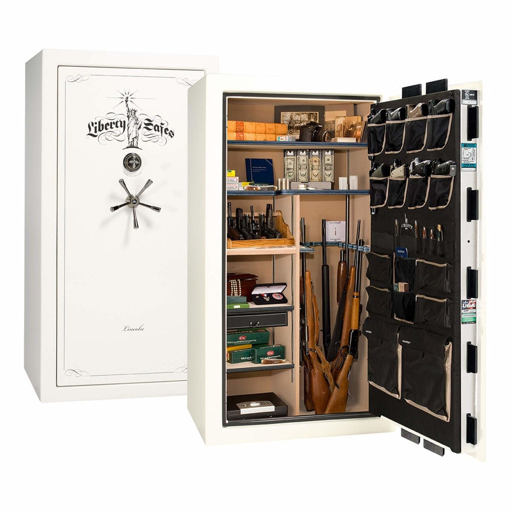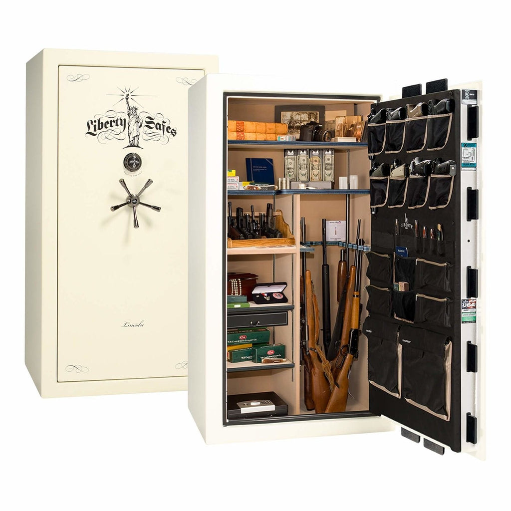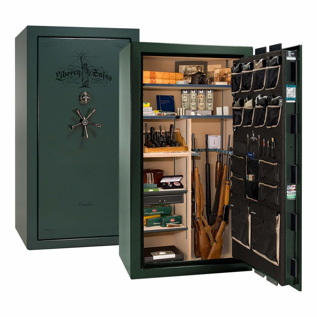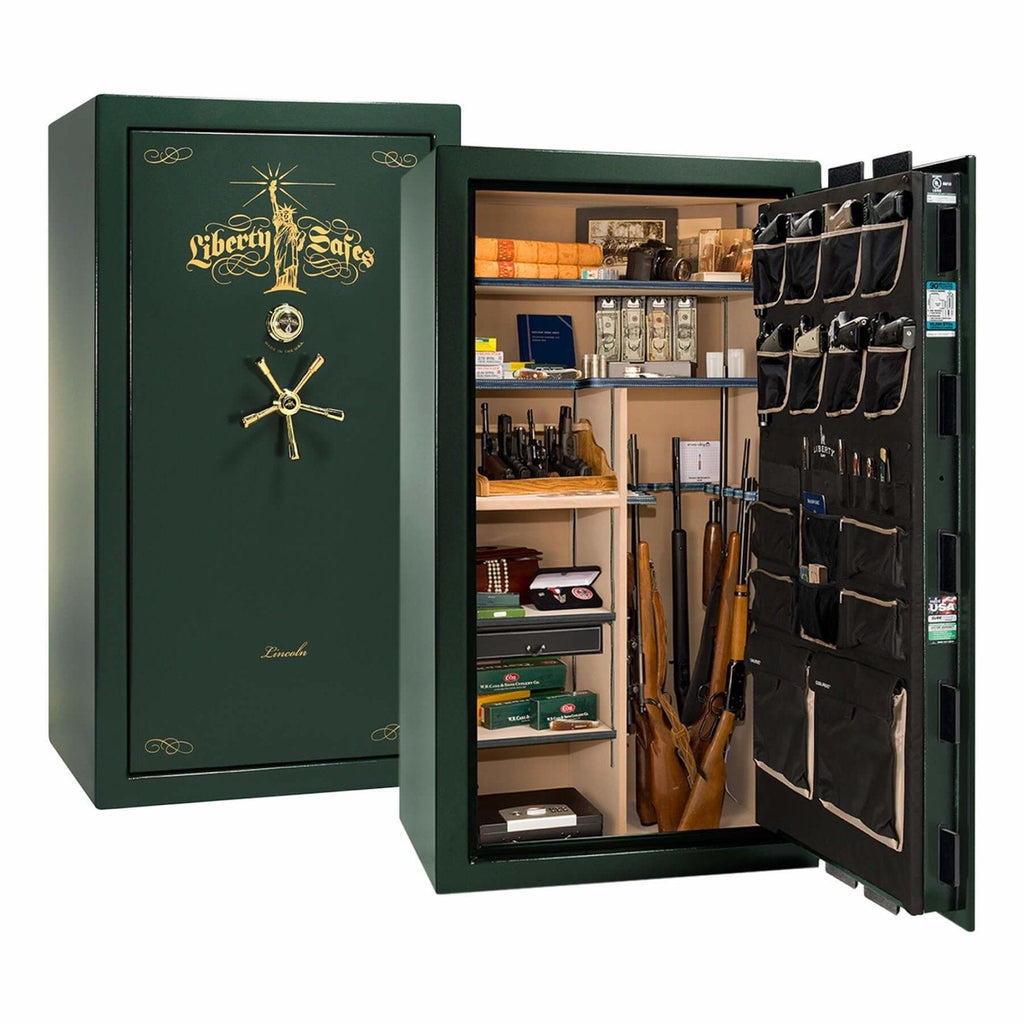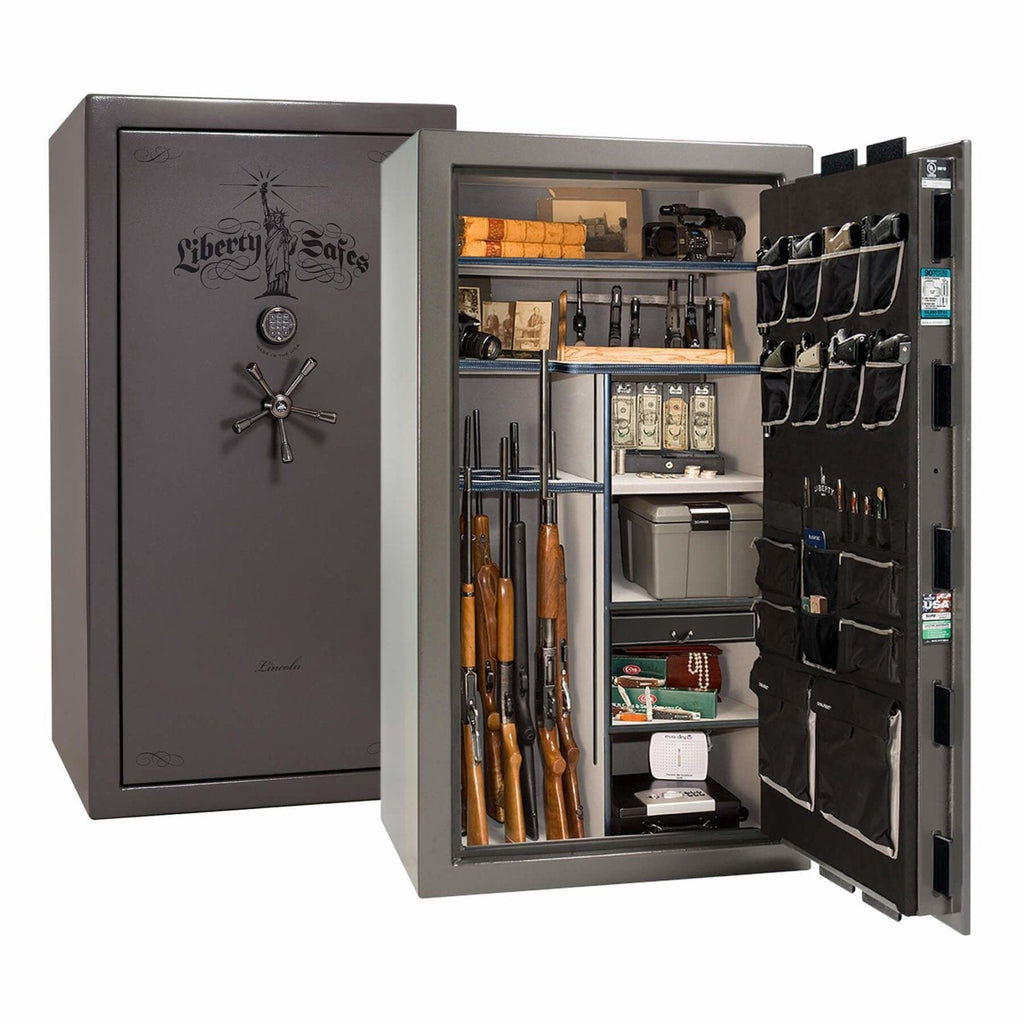 The Lincoln 40 is the “just right” premium safe for discerning buyers who need more space than the Lincoln 23, but want a capacious level 5 safe under 1,100 lbs. The Lincoln 40 features: space for up to 35 long guns; multiple gloss, marble, or textured finishes; a thicker UL-listed safe body; thicker locking bars; upgraded drill-resistant ball-bearing hardplate; dual relockers; a 5-spoke handle with slip-clutch mechanism; and 2 Hours of fire protection at 1200°F.