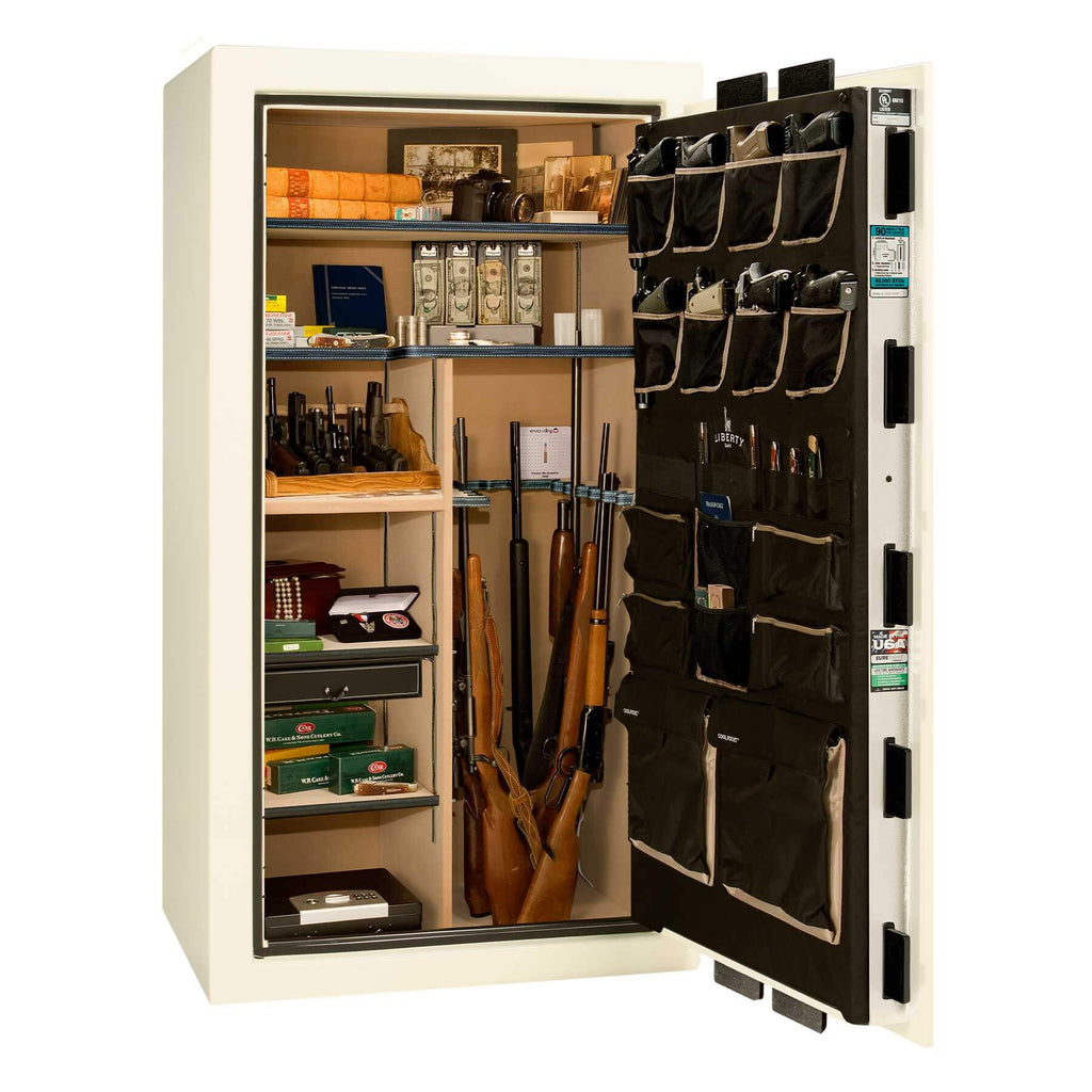 The Lincoln 40 is the “just right” premium safe for discerning buyers who need more space than the Lincoln 23, but want a capacious level 5 safe under 1,100 lbs. The Lincoln 40 features: space for up to 35 long guns; multiple gloss, marble, or textured finishes; a thicker UL-listed safe body; thicker locking bars; upgraded drill-resistant ball-bearing hardplate; dual relockers; a 5-spoke handle with slip-clutch mechanism; and 2 Hours of fire protection at 1200°F.
