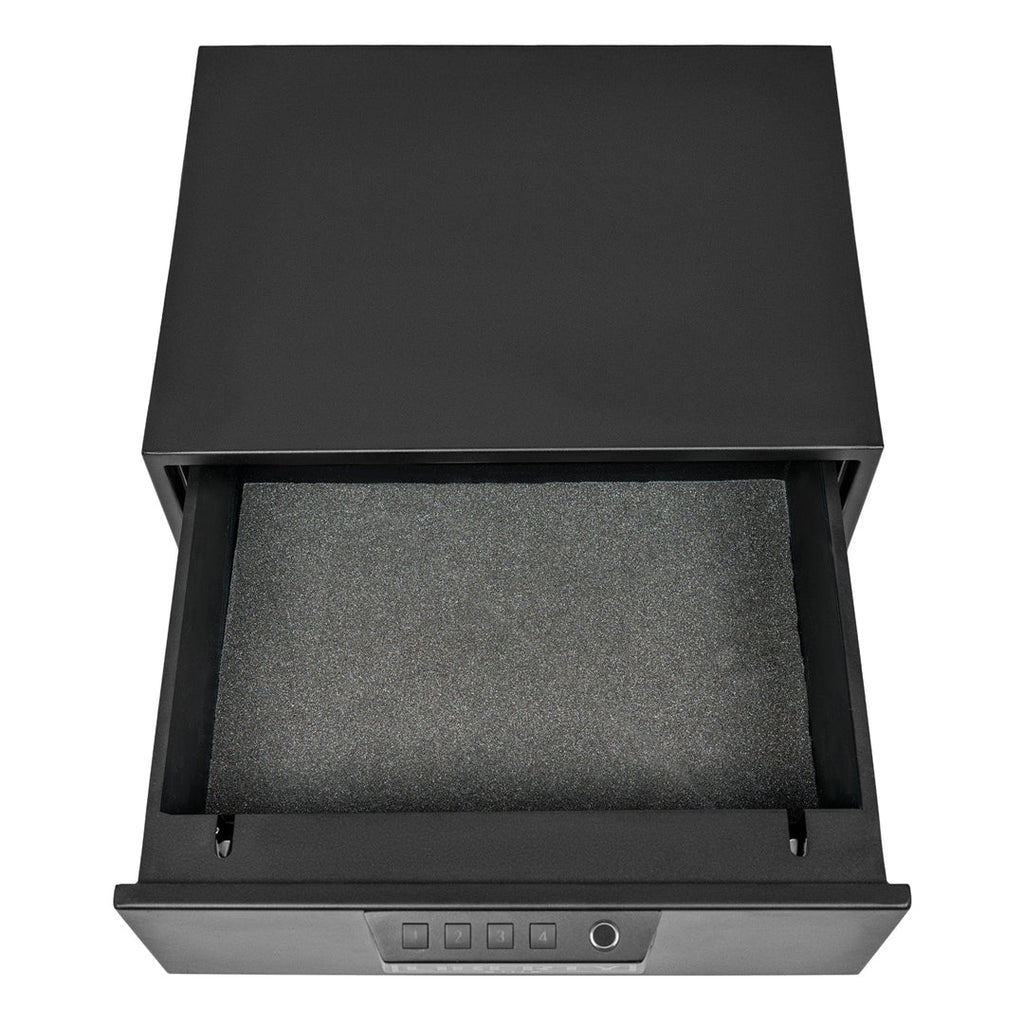Equipped with a quick access fingerprint sensor and wireless connectivity, the HDV 500X allows you to manage your safe from anywhere, anytime. Its slide-out drawer and foam-lined interior keep your items neatly organized and shielded from damage. The dual latch closure and interior LED lighting enhance security and visibility, ensuring your valuables are safe day or night.