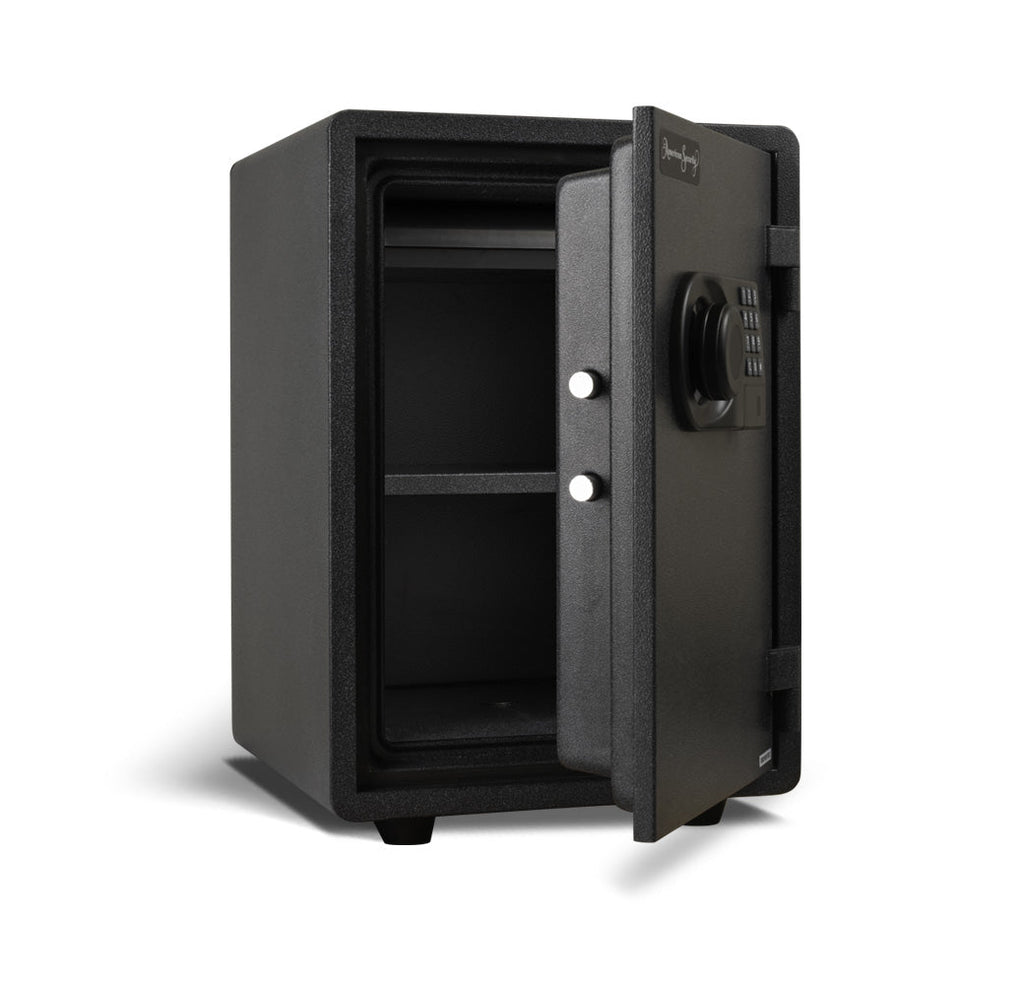 Two steel deadbolts prevent door removal if hinges are removed during a forced entry attempt.