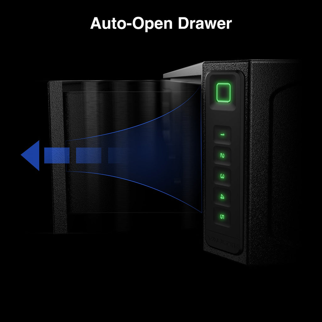 • Illuminated, Accessible Interior: Auto-open drawer with responsive LED lighting makes it easy to see and access your firearms, even in low-light conditions.