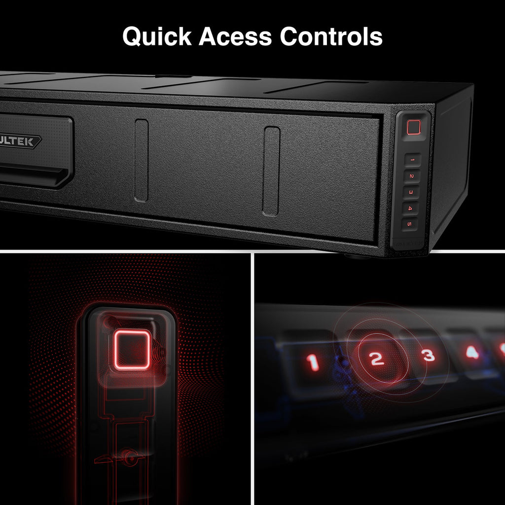 The Vaultek RS Slider ViSN is a slim-profile, high-security safe built for quick access and discreet storage of rifles, pistols, and essential gear. Designed with reinforced steel construction, biometric access, and a smart auto-opening drawer, it combines rugged security with modern convenience for both home and vehicle use.