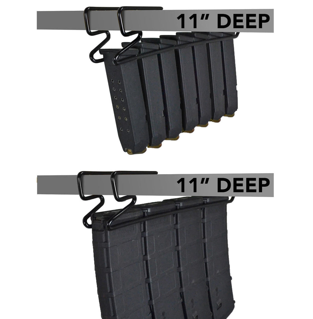 - Free up shelf space and store gun magazines under the shelf.
