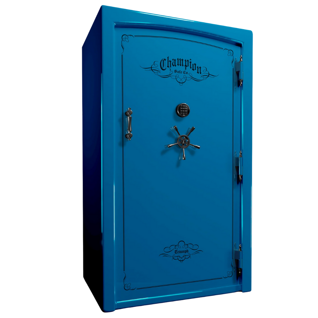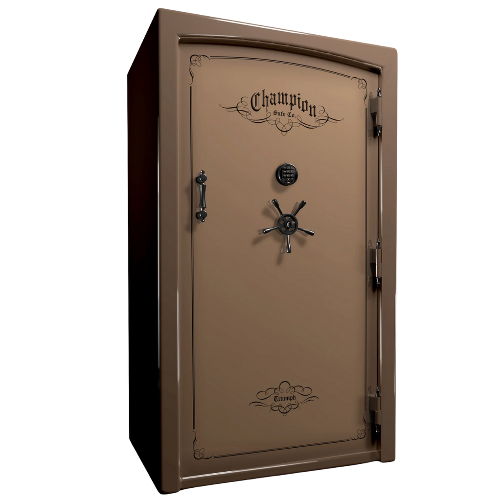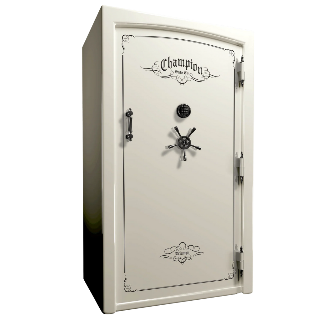 Champion uses American-made steel, continuous MIG welds, and reinforced door frames to ensure long-term security. The Triumph line is known for exceptional steel thickness and superior door strength compared to typical mass-market safes.
