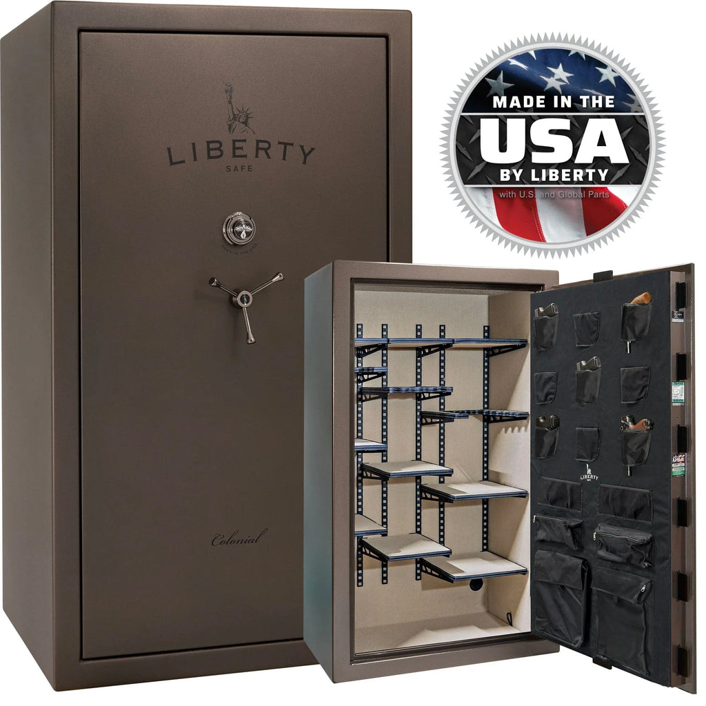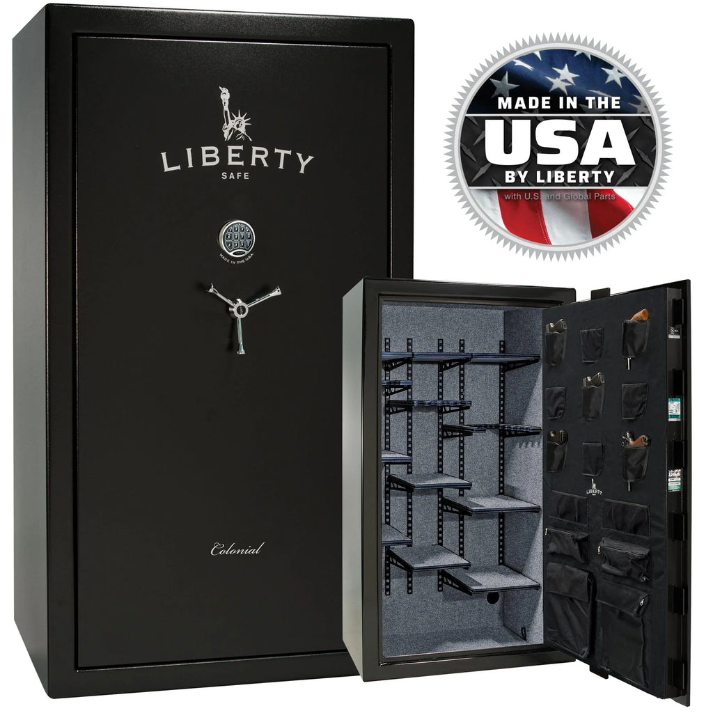 “Buy the largest safe you can afford” is great advice, and the Colonial 50 is a top choice for people who want greater security, features, and exterior/interior color choices in a large safe with storage for up to 64 long guns. You get a level 3 security rating, our proven slip-clutch mechanism on the 3-pronged handle, and a full 75 minutes of fire protection at 1200°F, plus our Pro Flex™ adjustable interior shelving system.
