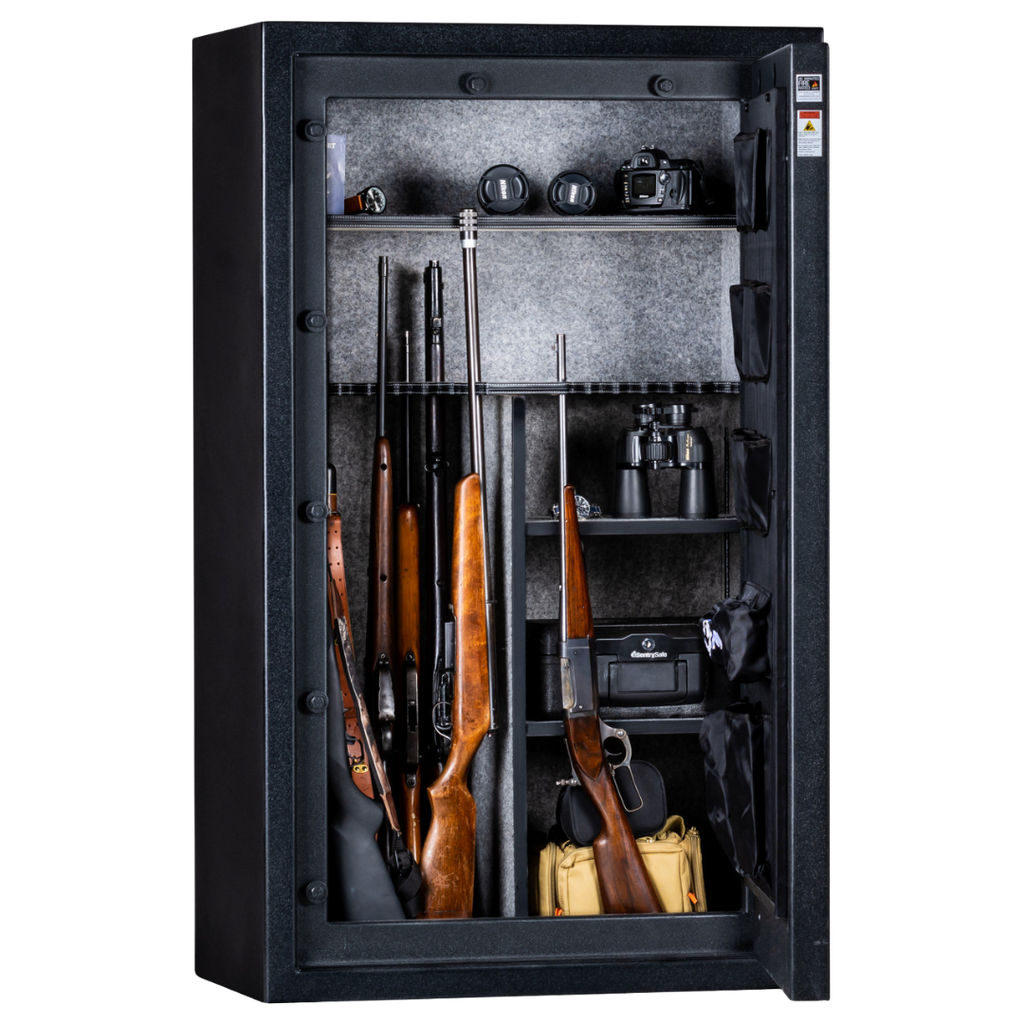 | Accessories Included | Deluxe door organizer; internal electrical/USB; fixed top shelf & gun shelf; two adjustable right-side shelves; drop handle |