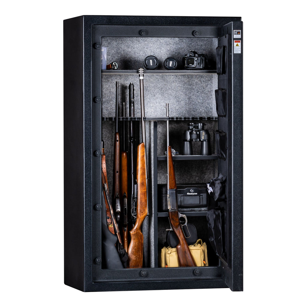 - Deluxe door organizer and interior shelves optimize ≈44-gun capacity.